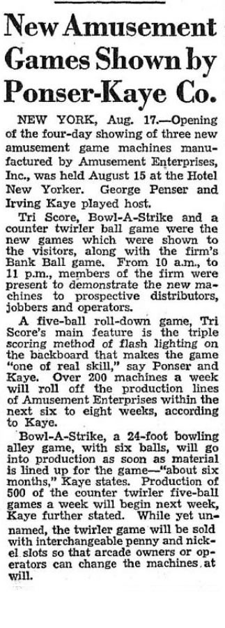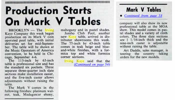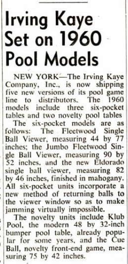 In 1962 William T. (Bill) O’Donnell then the sales manager of Lions Equipment Corp (later renamed Bally) approached Abe Green with a request to raise money to buy Bally. Abe Green and Barney Sugarman were the owners of Runyon Sales Company a New Jersey based coin-op distributor. Green brought in Sam Klein the former president of Stern Vending Company in Cincinnati, OH and Irving Kaye the pool table manufacturer from Brooklyn, NY.