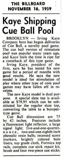 billboard-580505-hockey_dist-runyon billboard-620317-eldorado_ad billboard_581124-deluxe_competitor patent-usd259579_page_2 ambassador_3 satellite_1 Bank Ball by Irving Kaye's Amusement Enterprises, Inc. NYC circa 1946 Irving Kaye Jumbo Hockey batting_practice03-00 DuecesWild